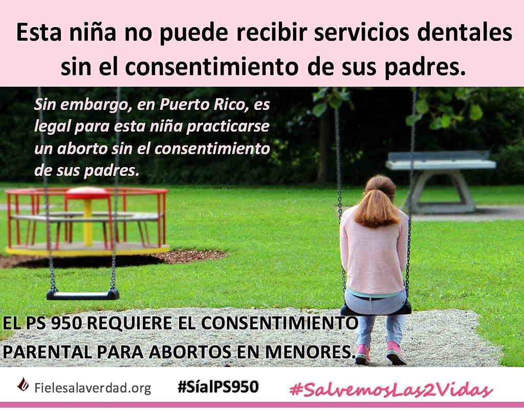 El Gob. Ricardo (Ricky) Rosselló Nevares vetó el PS 950 que habría establecido un marco reglamentario para la práctica del aborto por primera vez en Puerto Rico. A pesar del PS 950 haberse aprobado en ambas cámaras legislativas y de contar con el respaldo masivo del Pueblo, el Gobernador optó por aliarse con la industria abortista y el feminismo radical. Con su veto, Rosselló aprobó que las menores sigan realizándose abortos sin ni siquiera el conocimiento de sus padres y que tanto mujeres como adolescentes desconozcan las consecuencias y riesgos de someterse a dicho procedimiento invasivo.
